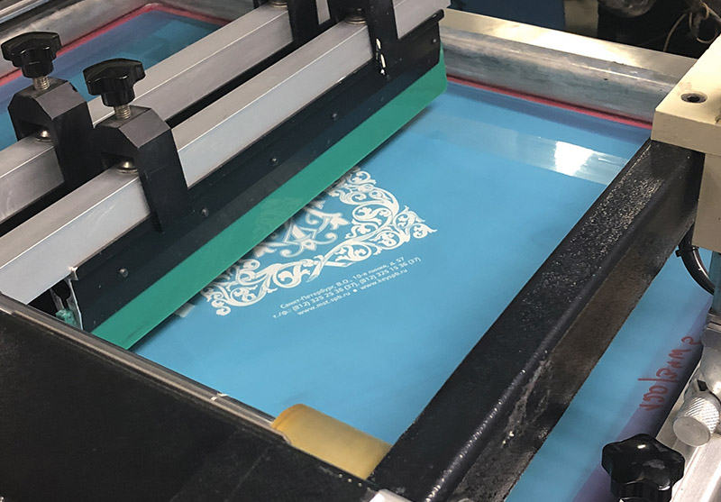 С помощью трафаретной печати, или как её ещё называют – шелкографии – можно преобразить любой вид продукции. Она часто востребована при печати на тонированных дизайнерских картонах и бумагах. С помощью шелкографии, к примеру, наносится белая основа для последующей печати офсетом на такие материалы.